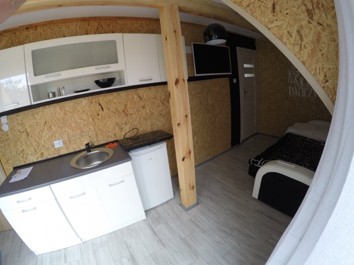 Balkon. Rozkładana sofa. Prywatna łazienka. Widok na sosny i w oddali wydamy. Dobra dla palących z uwagi na balkon. Od strony północnej. [tagi: kwatery hel, hotele na półwyspie helskim]